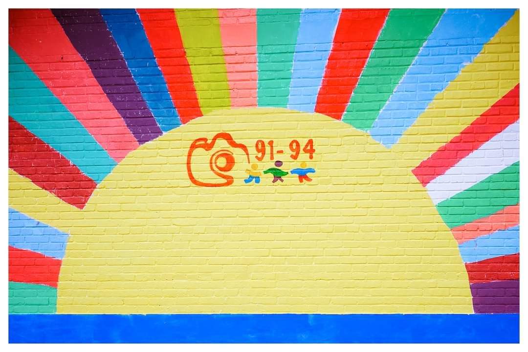 Mảng tường trang trí với những mảng màu để kích tích sự sáng tạo được thực hiện bởi các nhà tài trợ 91-94 Hà Nội